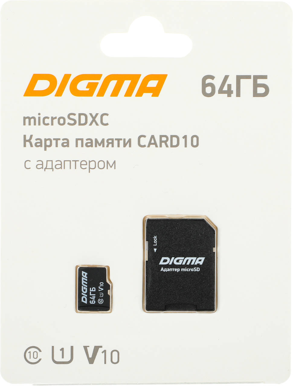 Карта памяти Digma Флеш карта microSDXC 64GB CARD10 V10 + adapter