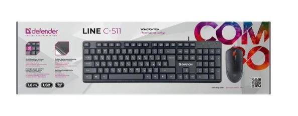 Клавиатура DEFENDER Комплект кл-ра+мышь провод. Line C-511 ,black (45511)