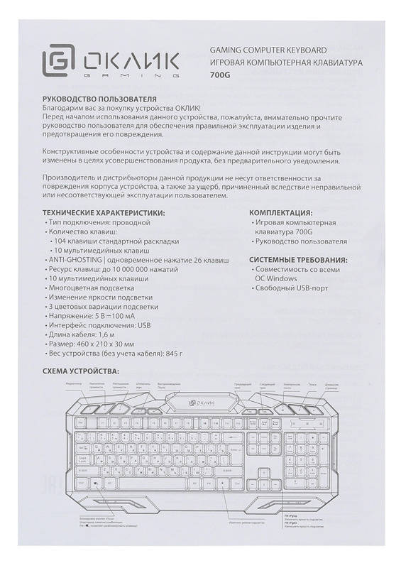 | Размеры клавиатуры: | 460x30x210 |