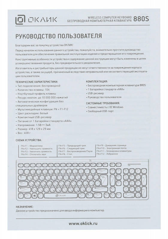 | Вес (клавиатуры): | 0.408 |