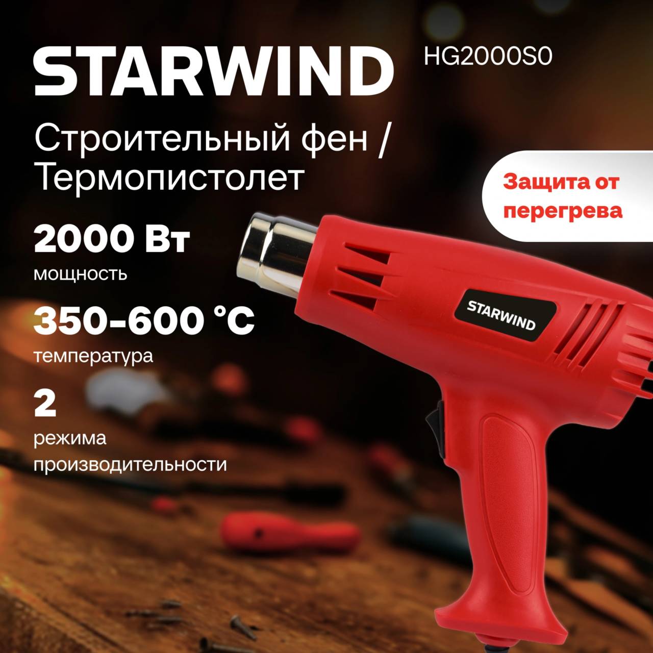 Клеевой пистолет STARWIND Технический фен HG2000S0 2000Вт темп.350/600С