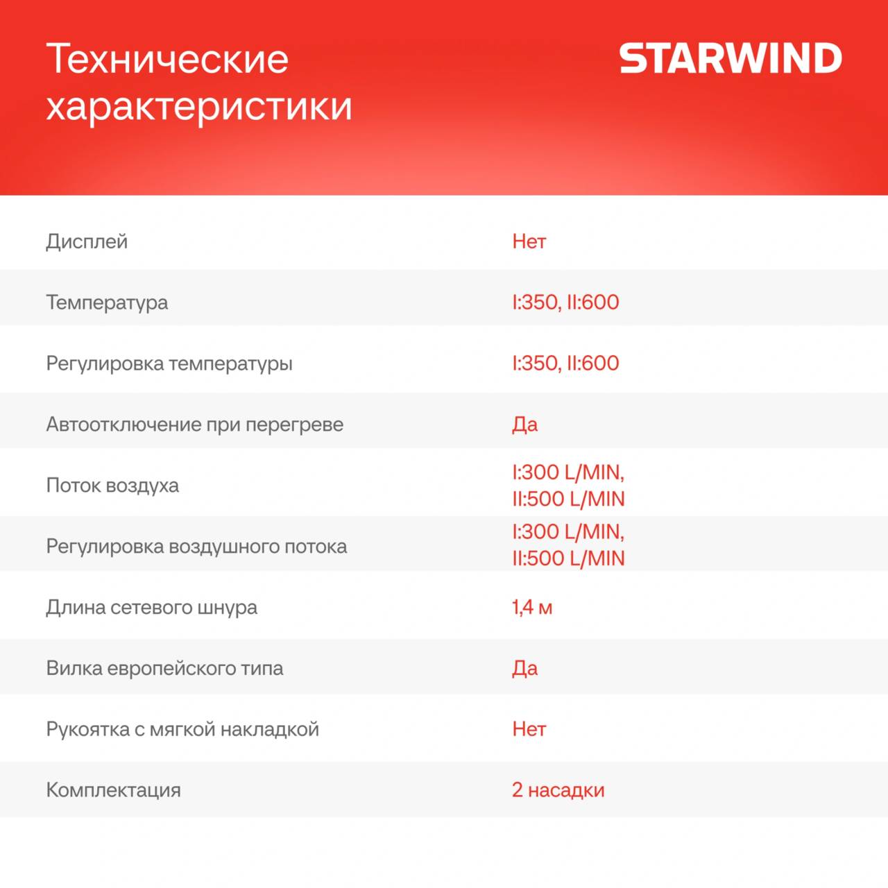 Клеевой пистолет STARWIND Технический фен HG2000S1 2000Вт темп.350/600С