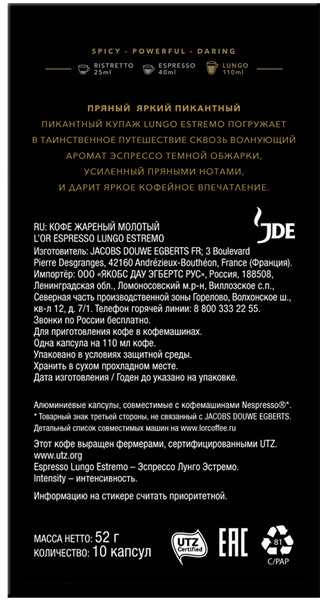 Кофе L`OR капсульный Espresso Lungo Estremo упаковка:10капс. 52г.  Nespresso1315475-11315475-21315475-31315475-41315475-5