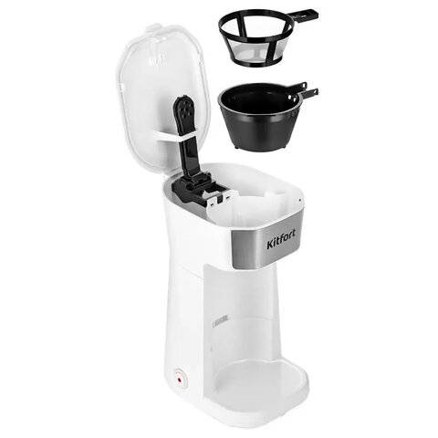 Кофеварка KITFORT капельная КТ-7411, 450 Вт, объем 0,4 л, термокружка в ПОДАРОК, белая