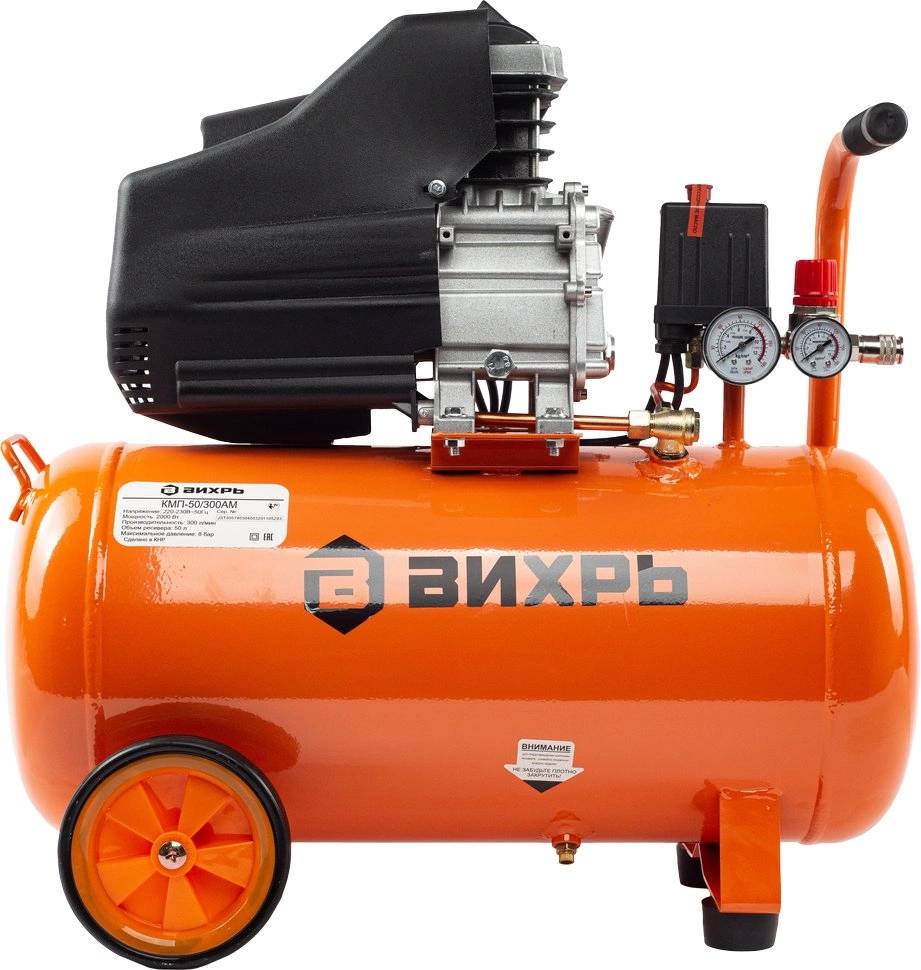 Компрессор пневматический ВИХРЬ Компрессор поршневой КМП-50/300АМ масляный 300л/мин 50л 2000Вт оранжевый