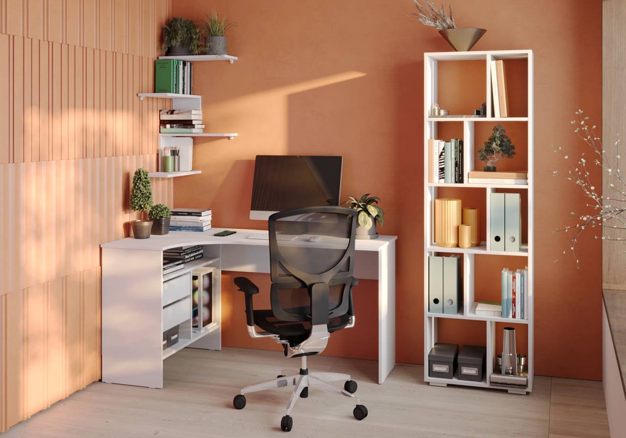 Компьютерный стол СОКОЛ Стол для компьютера СПм-25 Л столешница ЛДСП белый 145x74x81см