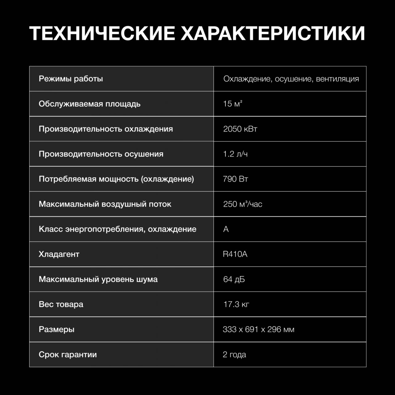 Режимы работы:охлаждение, осушение, вентиляция