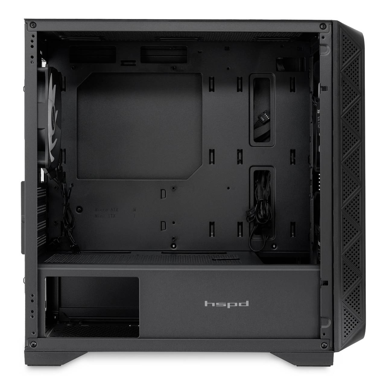 HSPD M321 - это компактный и стильный корпус для компьютера в формате Mini-Tower, отличающийся сетчатой передней панелью для лучшего охлаждения и скользящей боковой панелью из закаленного стекла. Он прекрасно подойдет для сборки как игровой системой, так и рабочей станции с небольшими размерами.Основные характеристики:• Тип: Mini-Tower, сетчатая передняя панель, скользящая боковая панель• Цвет: Черный• Материал: SPCC (сталь), толщина 0.45 мм• Размеры: 390x200x385 мм• Форм-фактор: mATX, mITX• Максимальная длина видеокарты: 340 мм• Максимальная высота процессорного кулера: 160 мм• Максимальная ширина блока питания: 184 мм• Слоты расширения: 4xPCI• Вентиляторы: 2x140 мм ARGB + 1x120 мм ARGB (с возможностью установки дополнительных)• Дисковые отсеки: 2x2.5", 2x3.5"• Внешние порты: 2xUSB-A 3.0, 1xUSB-A 1.0Преимущества:• Компактность: Несмотря на миниатюрный размер, корпус HSPD M321 предлагает достаточно пространства для создания мощной системы.• Стильный дизайн: Корпус отличается современным дизайном с скользящей боковой панелью из закаленного стекла для демонстрации внутренних компонентов и сетчатой передней панелью для улучшенной вентиляции.• ARGB подсветка: 3 встроенных вентилятора с ARGB-подсветкой позволяют создать эффектный и яркий дизайн для компьютера.• Отличная вентиляция: Сетчатая передняя панель обеспечивает эффективное охлаждение компонентов ПК и улучшает циркуляцию воздуха.• Скользящая боковая панель: Удобный механизм скольжения позволяет легко открыть боковую панель и получить доступ к компонентам.