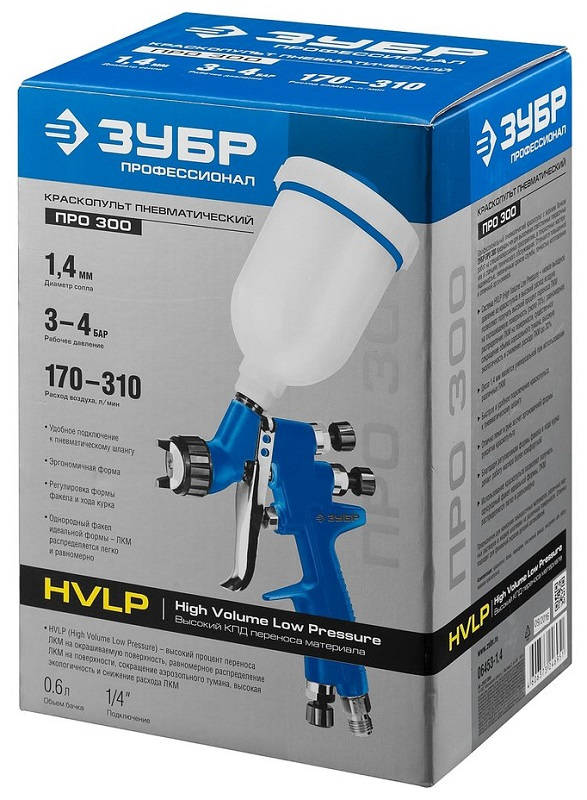 Краскораспылитель пневматический ЗУБР ПРО 300 310л/мин соп.:1.4мм бак:0.6л 06453-1.4
