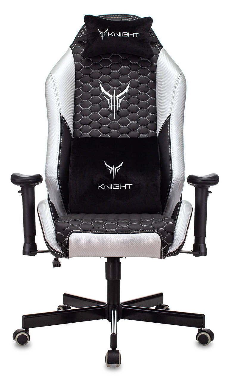 Кресло, стул KNIGHT Кресло игровое Neon черный/серебряный соты эко.кожа с подголов. крестовина металл (KNIGHT NEON SILVER)