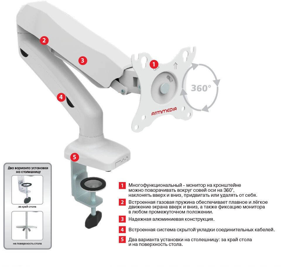 Описание:Кронштейн ARM MEDIA для мониторов LCD-T21W белый (10241)
