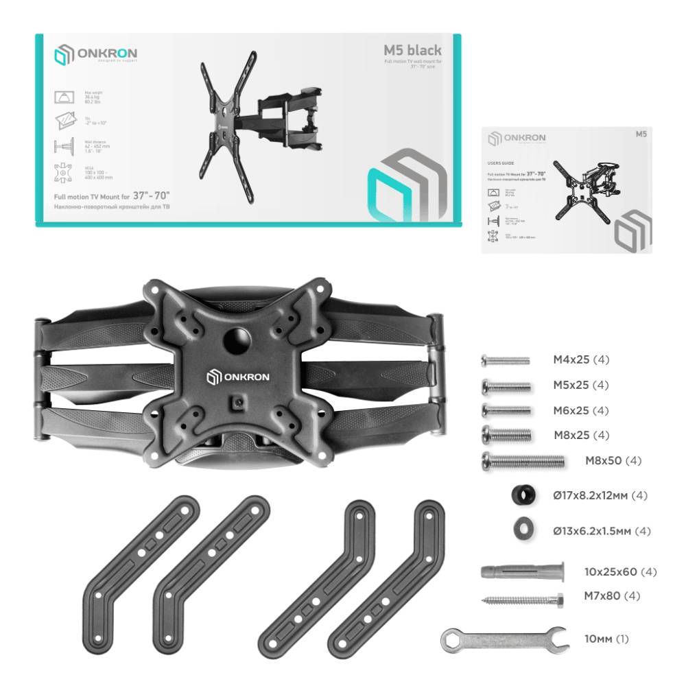 Кронштейн для ТВ ОНКРОН ONKRON кронштейн для телевизора 37"-70" наклонно-поворотный, чёрный M5 M5-B