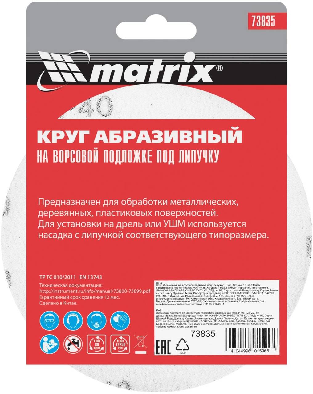 Круг, диск, фреза MATRIX Диск абразивный по алюм./дер./плас. 73835 d=125мм