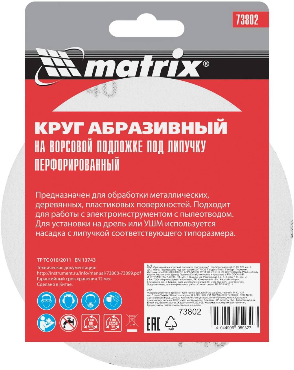 Круг, диск, фреза MATRIX Диск абразивный 73802 d=125мм