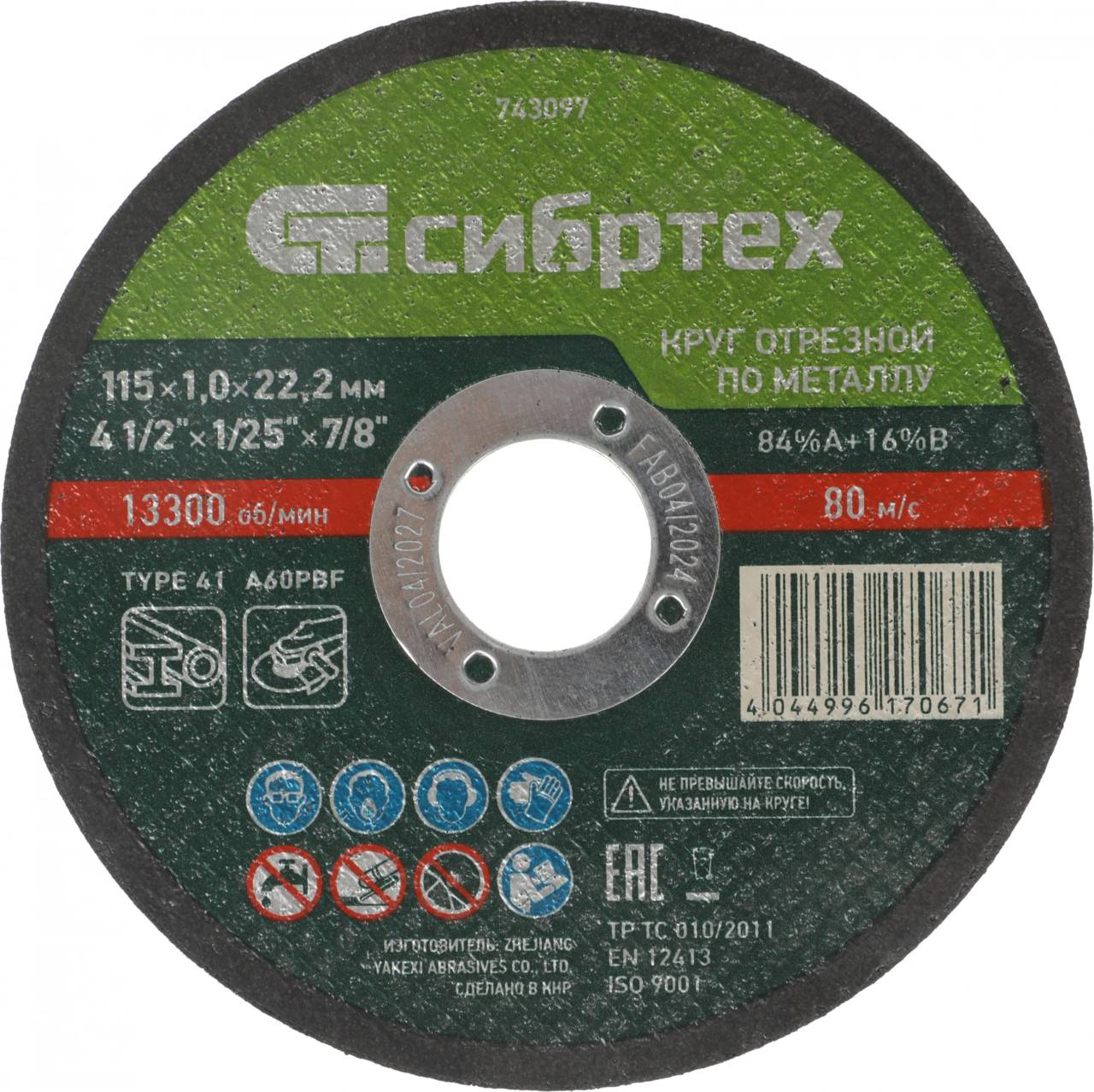 Круг, диск, фреза СИБРТЕХ Диск отрезной по мет. 743097 d=115мм d