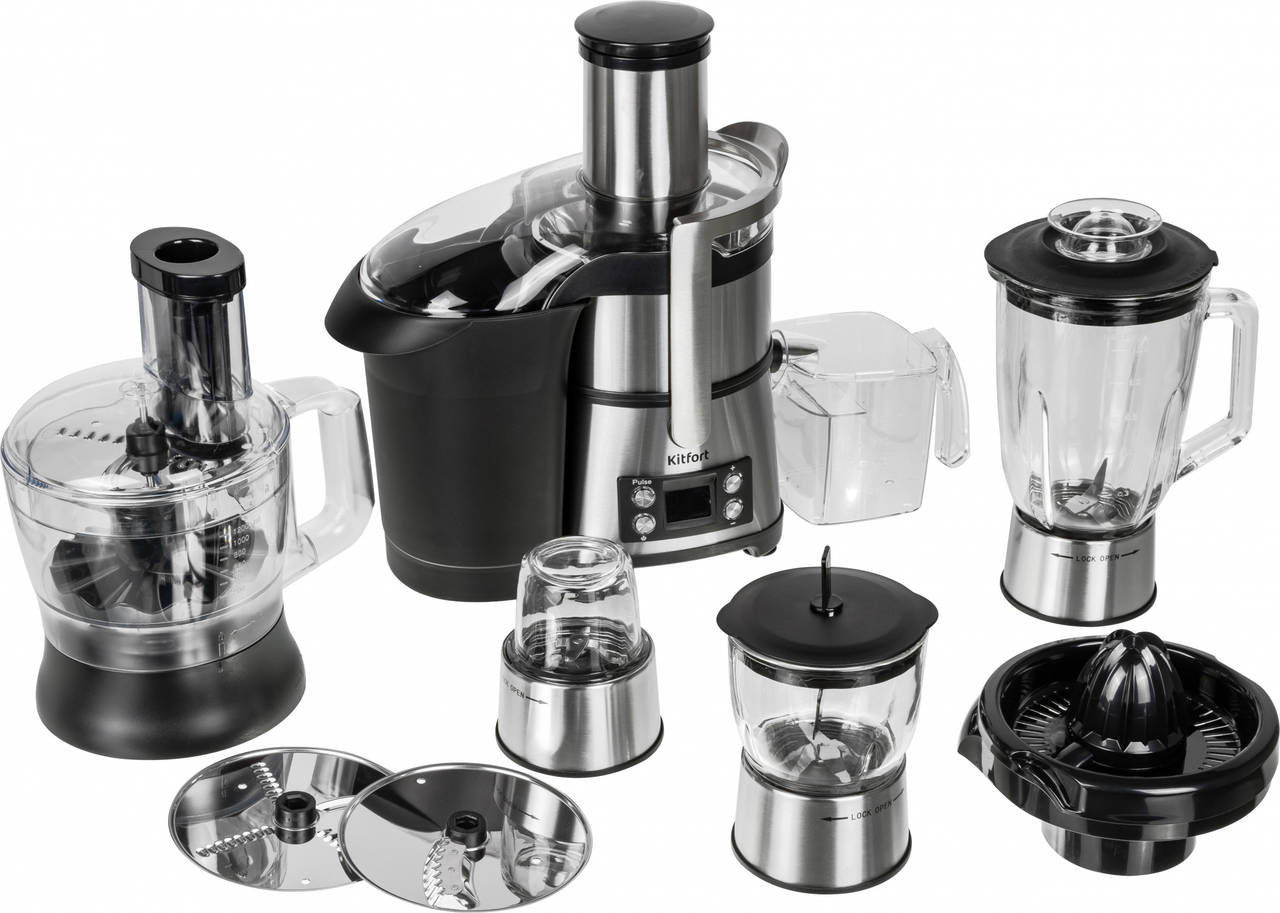 | Дополнительно: | Ёмкость чаши блендера 1,5 л. Ёмкость кофемолки 0,2 л. Ёмкость измельчителя 0,7 л. Ёмкость чаши комбайна 1,2 л. Ёмкость контейнера для сока 0,8 л. |