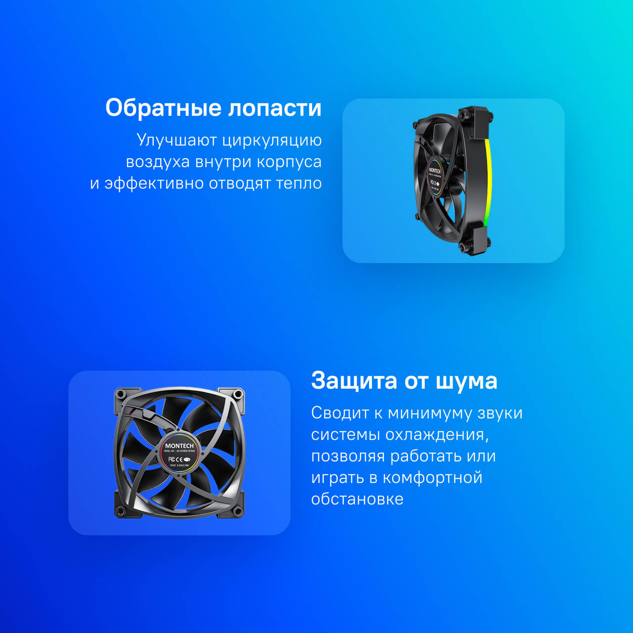 Кулер для корпуса Montech Вентилятор для корпуса RX120 Reverse ARGB 120х120x25 черный 4-pin 27дБ Ret