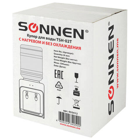 Компактный и эргономичный кулер SONNEN TSH-02T идеально подойдет для образовательного учреждения, дома, офиса. Благодаря ему чистая питьевая горячая или комнатной температуры вода будет доступна в любое время.