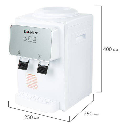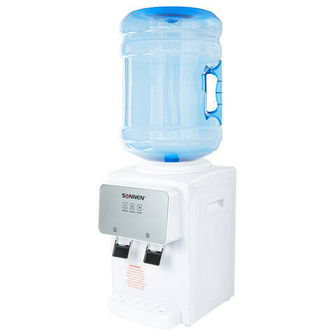 Кулер для воды SONNEN TSE-02WP, настольный, НАГРЕВ/ОХЛАЖДЕНИЕ ЭЛЕКТРОННОЕ, 2 крана, белый, 455622