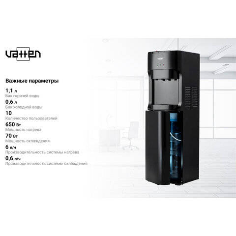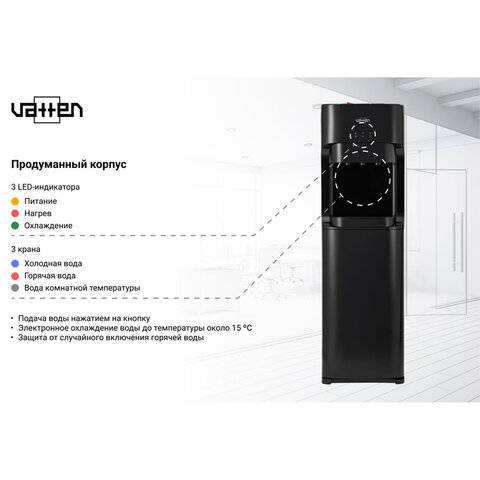 Кулер для воды VATTEN L45NE, напольный, нагрев/охлаждение, НИЖНЯЯ ЗАГРУЗКА, 3 крана, черный, 6165