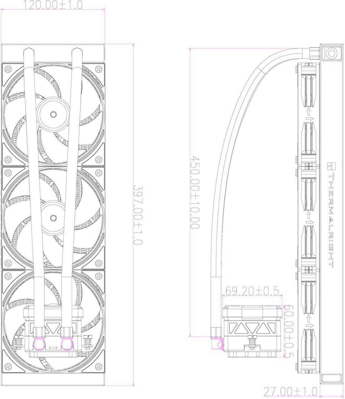 Кулер Thermalright Система водяного охлаждения Frozen Warframe 360 ARGB Soc-AM5/AM4/1200/1700/1851 черный 4-pin 29.8dB Al LCD Ret