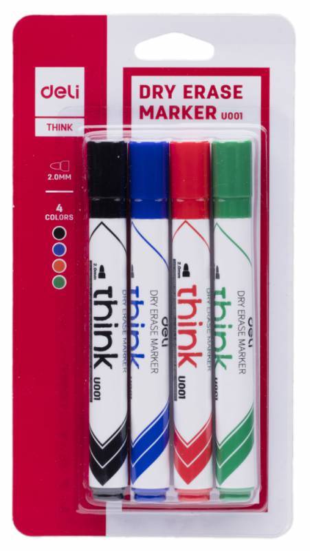 DELI Набор маркеров для досок EU00101 Think круглый пиш. наконечник 2мм 4цв. блистер (EU00101)