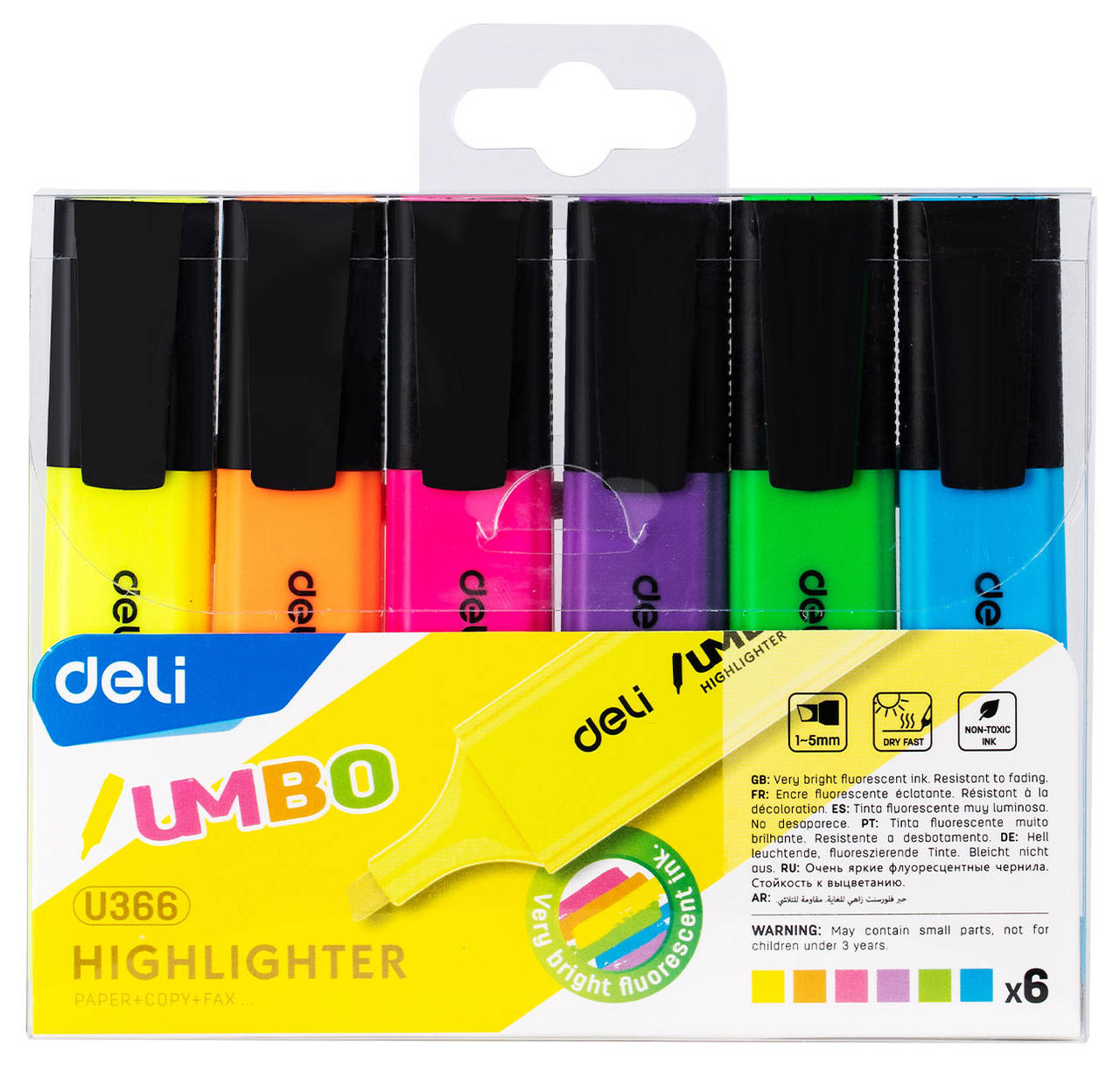 Маркер DELI Набор текстовыделителей EU366-MT Jumbo скошенный пиш. наконечник 1-5мм колпачок с клипом 6цв. ассорти пакет с европодвесом