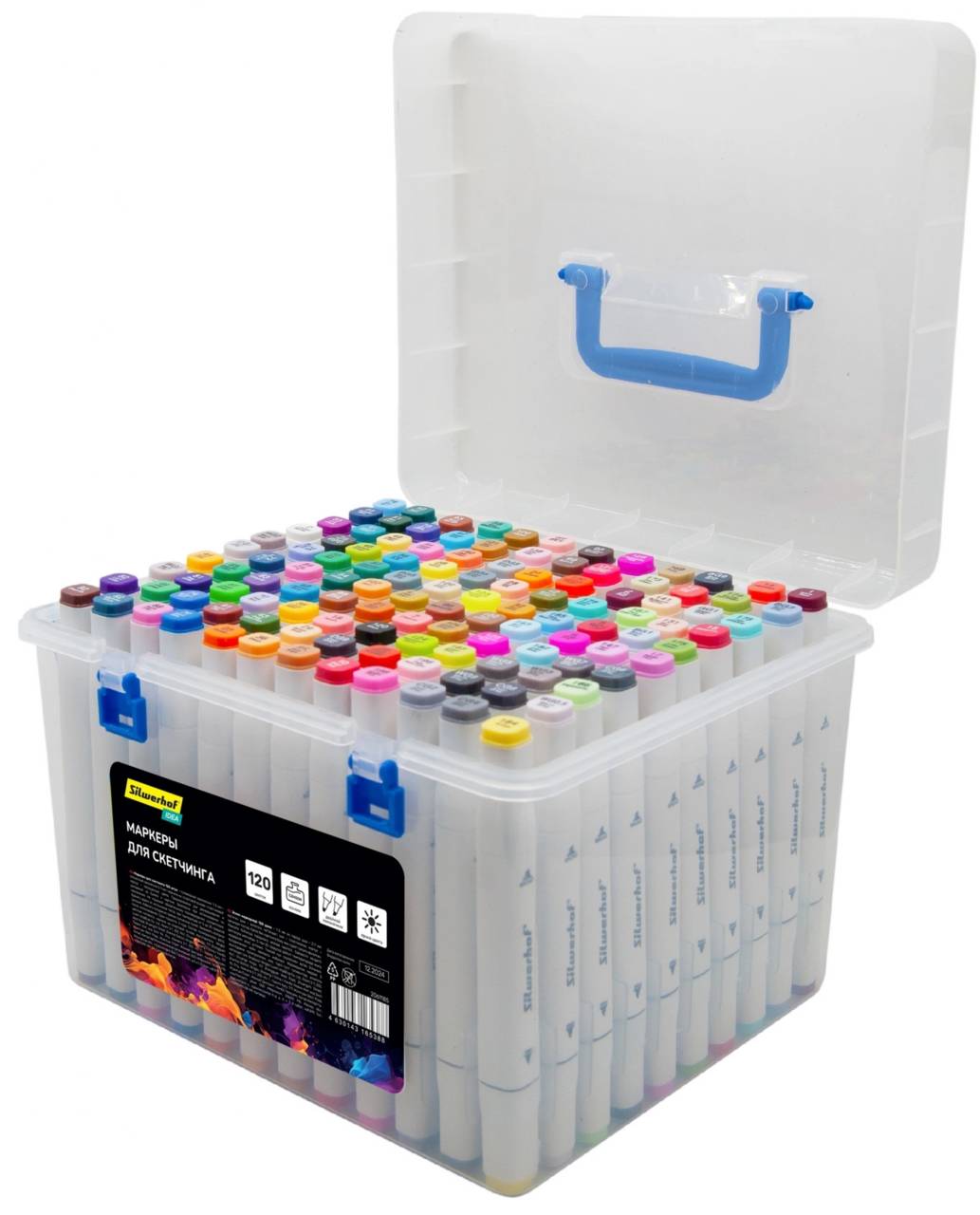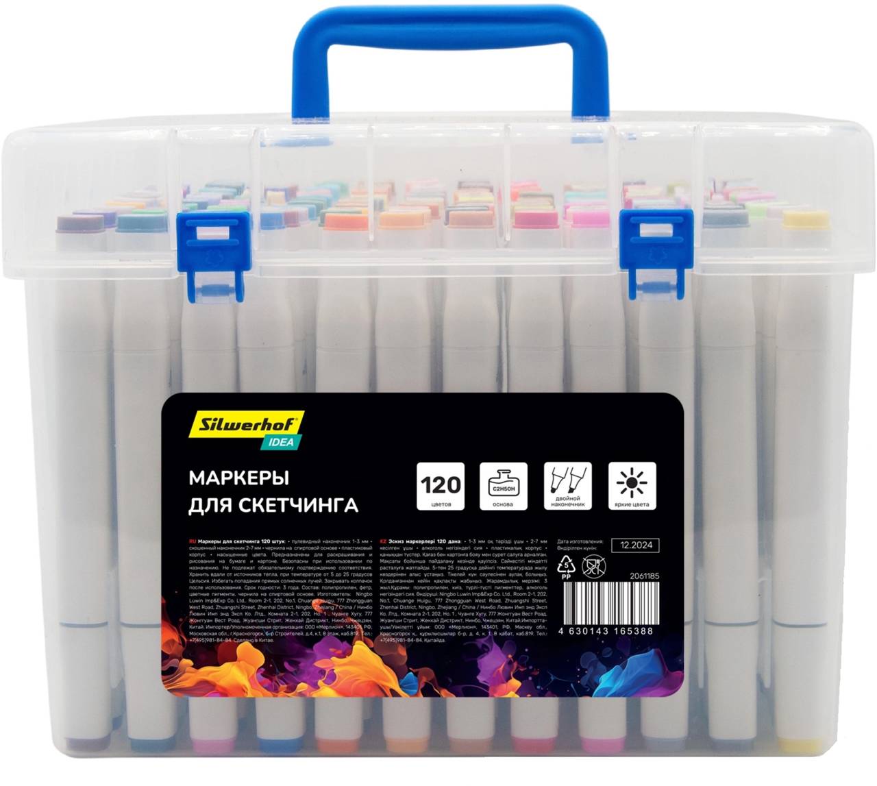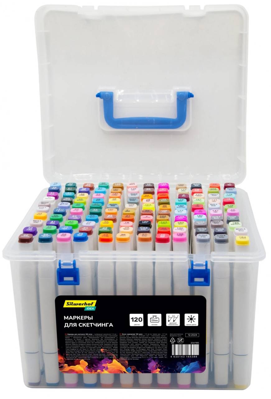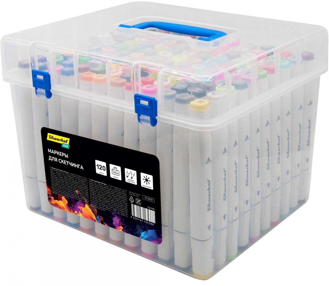 Маркер SILWERHOF Набор маркеров для скетчинга Idea двойной пиш. наконечник 1-7мм 120цв. пластиковая коробка