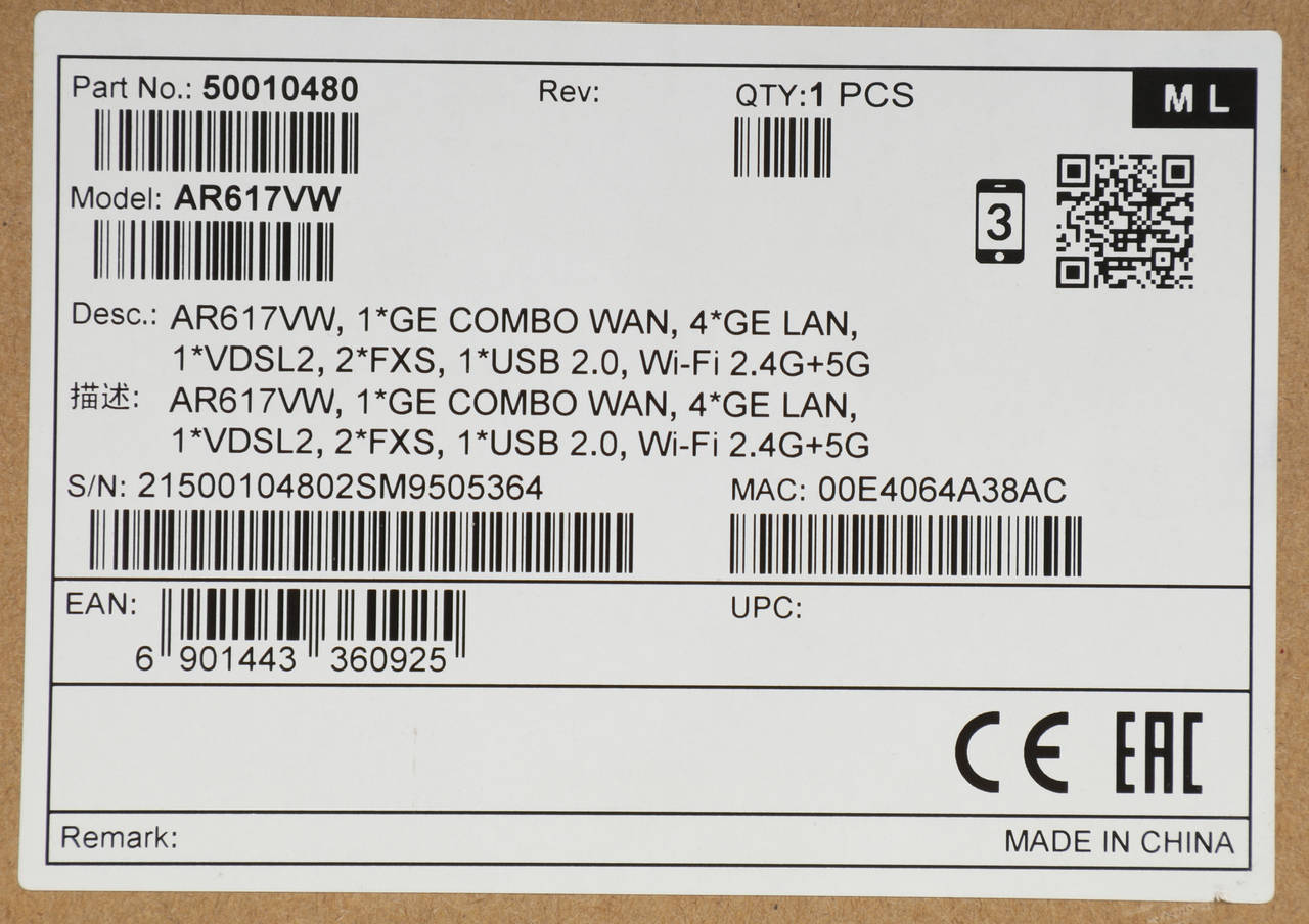 | Описание: | Маршрутизатор Huawei AR617VW 10/100/1000BASE-TX/VDSL/ADSL белый (50010480) |