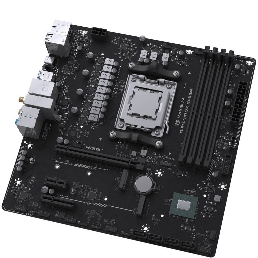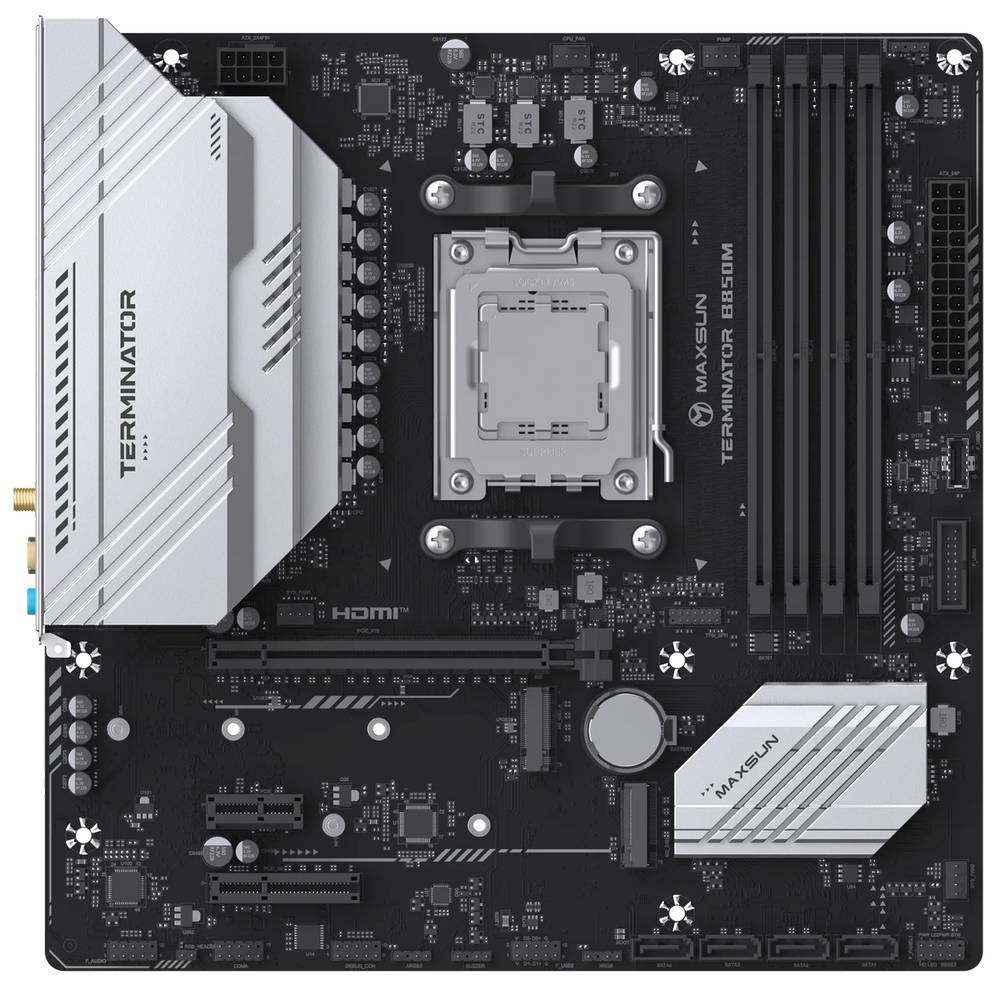 Материнская плата Maxsun MS-Terminator B850M WIFI B850, , 4*DDR5, 1*PCIEx16, 1*PCIEx4, 1*PCIEx1, 2*M.2, 2*TypeC, 6*USB3.2Gen1, 6*USB2.0, 4*SATA3.0, 2.5G, DP, HDMI, M-ATX, RTL