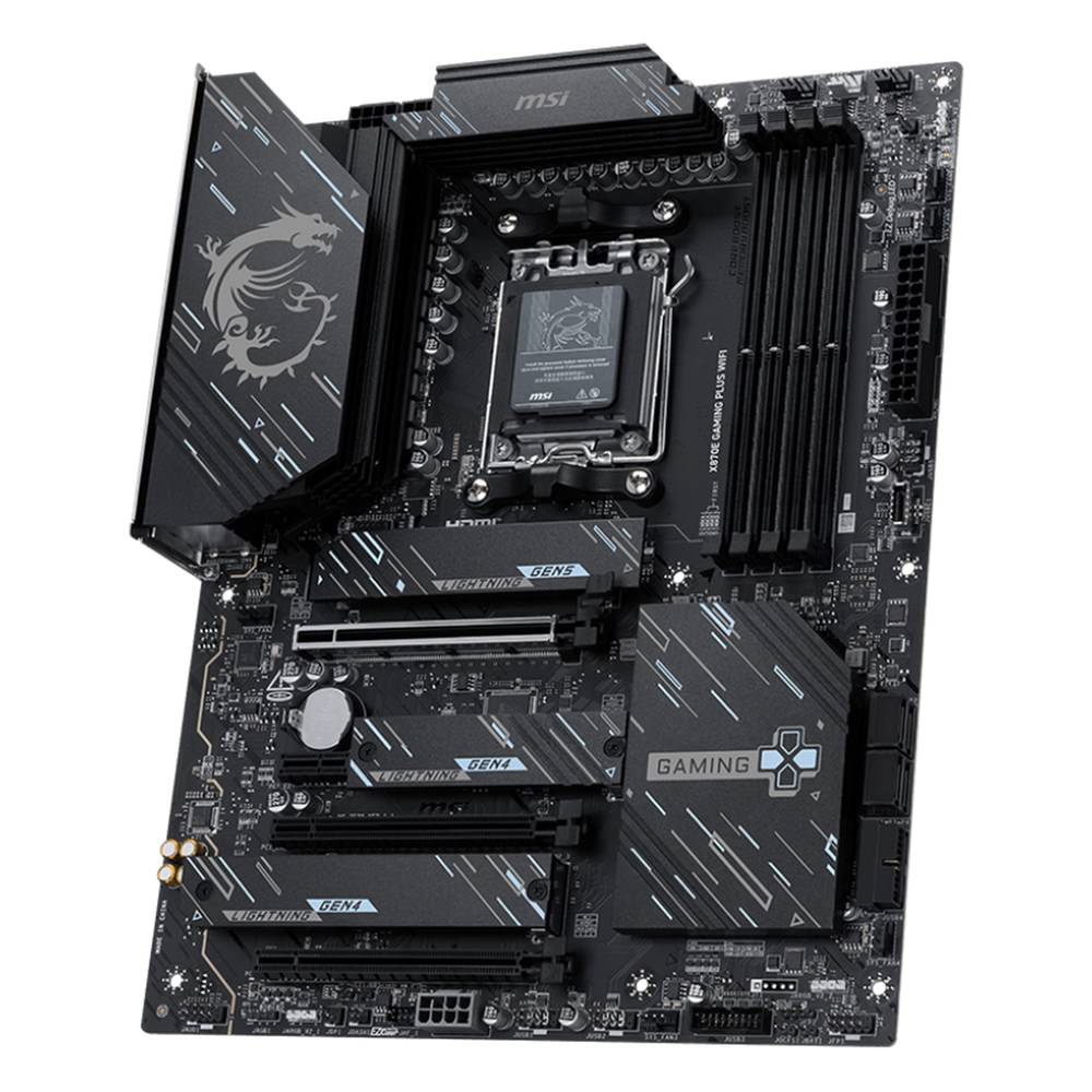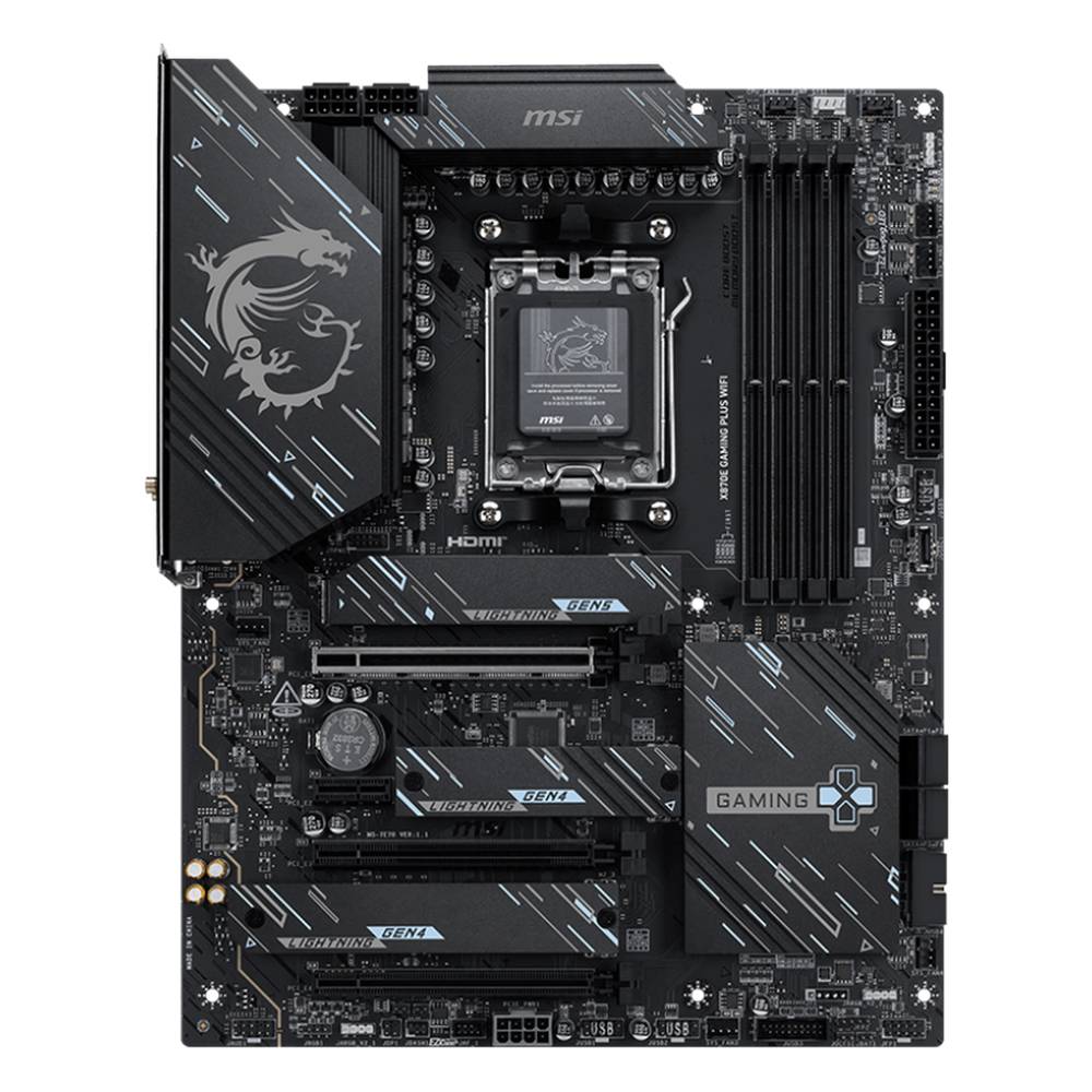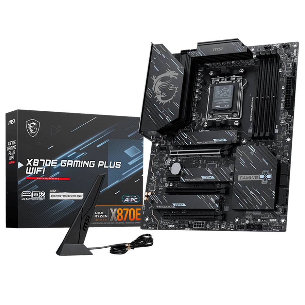 Материнская плата MSI X870E GAMING PLUS WIFI X870E, AM5, 4*DDR5, 3*PCIEx16, 1*PCIEx1, 3*M.2, 2*TypeC, 2*USB3.2Gen2, 6*USB3.2Gen1, 10*USB2.0, 4*SATA3.0, 5G, 1*Type-C, HDMI, ATX, RTL