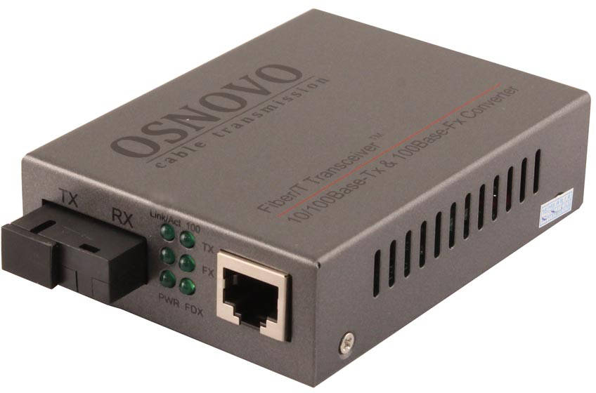 Медиаконвертер OSNOVO FE, по одному волокну SM до 20 км, по MM - до 1.5 км, tx1310/rx1550нм (OMC-100-11S5a)