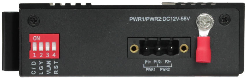 Подключение:RJ45 x 1; Клемм. колодка (питание) (4pin) x 1; SFP x 1; DC 5.5х2.1 (питание) x 1