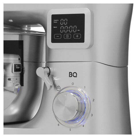 Миксер BQ планетарный MX640, 1600 Вт, 6 скоростей, 3 насадки, металлическая чаша 6 л, серебро, 86194435