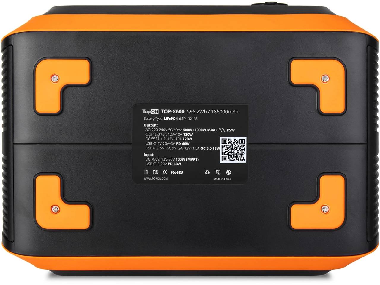 Мобильная электростанция TOPON Электростанция портативная TOP-X600 186000mAh 10A QC3.0/PD3.0 3xUSB черный/оранжевый