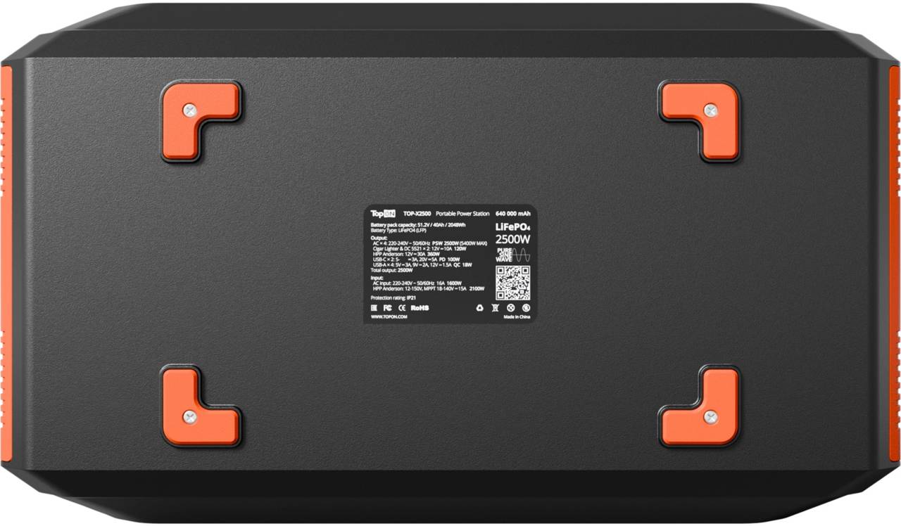 Мобильная электростанция Электростанция портативная TOP-X2500 640000mAh 16A QC3.0/PD2.0 6xUSB черный/оранжевый (103504)