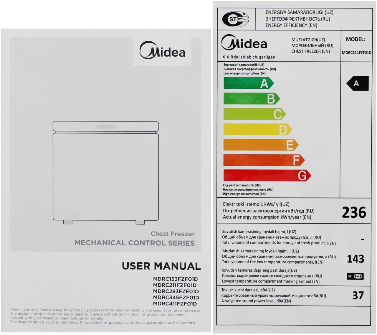 Морозильная камера MIDEA Морозильный ларь MDRC211FZF01D белый 75Вт