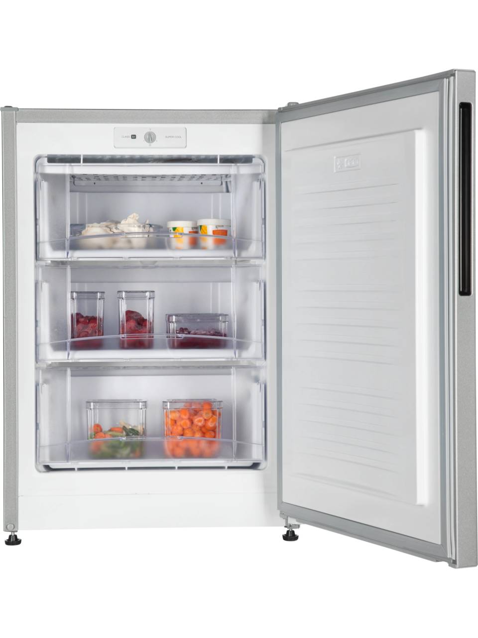 Морозильник серебристого цвета с черной интегрированной ручкой и продуманным внутренним пространством станет стильным и технологичным акцентом на вашей кухне. Высота устройства 85 см. Компактные размеры позволяют легко установить морозильник в малогабаритных квартирах или на даче. Для комфортного открытия и установки морозильника в удобном месте — дверь можно перенавесить с правой стороны на левую. Устройство обеспечивает высокую производительность с мощностью замораживания до 7 кг в сутки. В случае отключения электричества, морозильник может автономно сохранять температуру до 10 часов. Данная модель имеет ручную систему оттаивания. Для поддержания гигиены и чистоты, а также бесперебойной работы и эффективного процесса охлаждения необходимо время от времени проводить ручное размораживание морозильника. Морозильник имеет 3 выдвижных прозрачных ящика для размещения продуктов и форму для льда. Внутренняя поверхность модели имеет антибактериальное покрытие, которое предотвращает появление неприятных запахов и образование бактерий. |