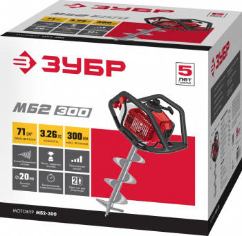 Мотобур ЗУБР МБ2-300 профес. 2-х такт. 2400Вт 3.26л.с. 71см3 8800об/мин