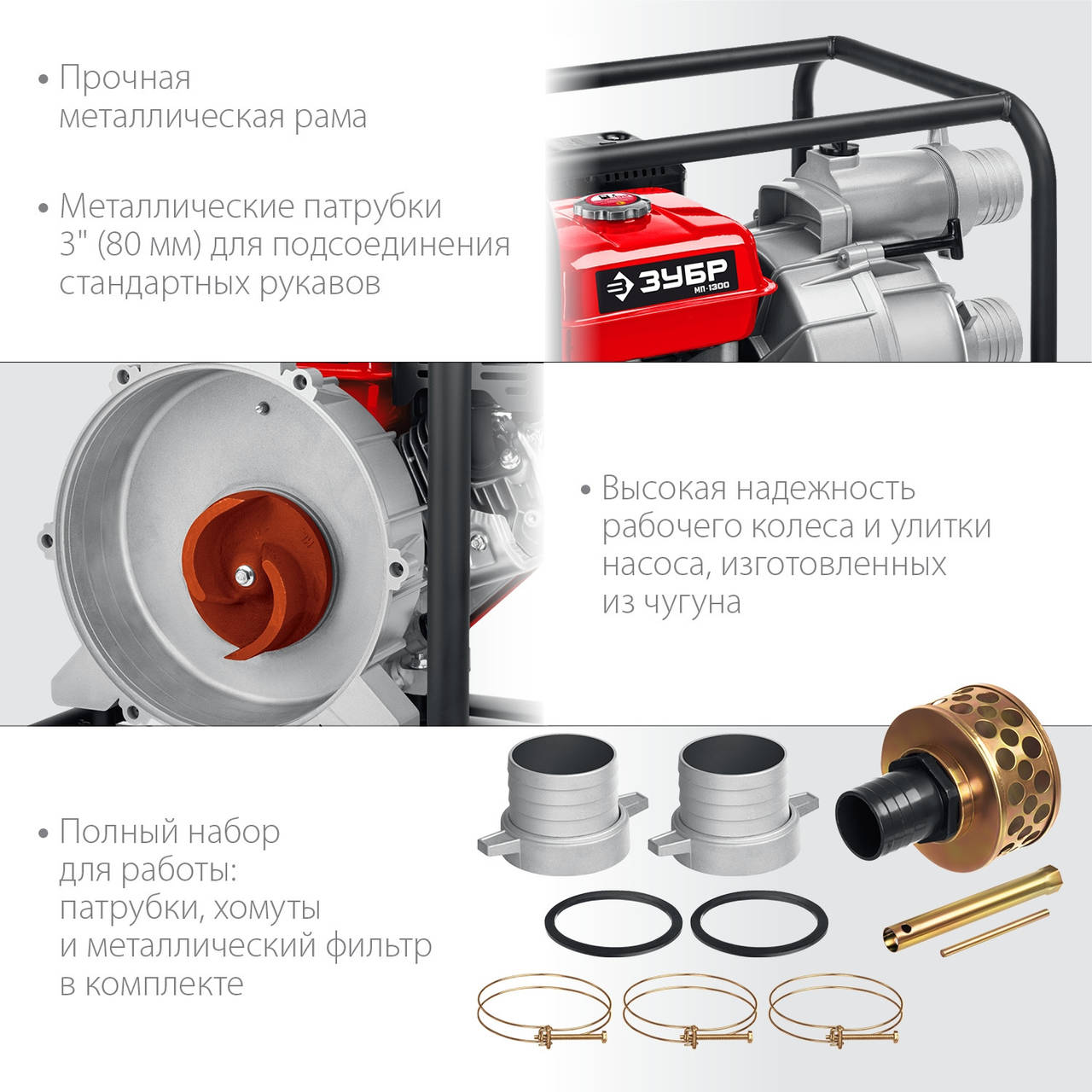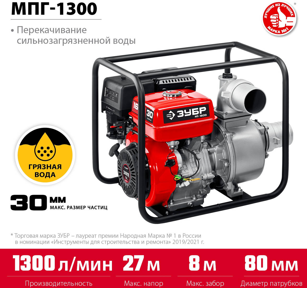 Описание:Мотопомпа ЗУБР Мастер МПГ-1300 1300л/мин для гряз.воды
