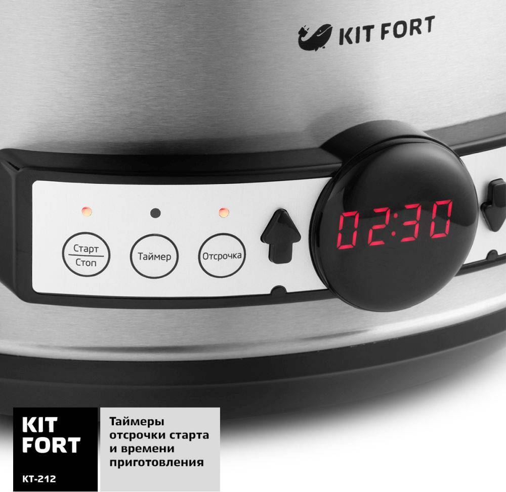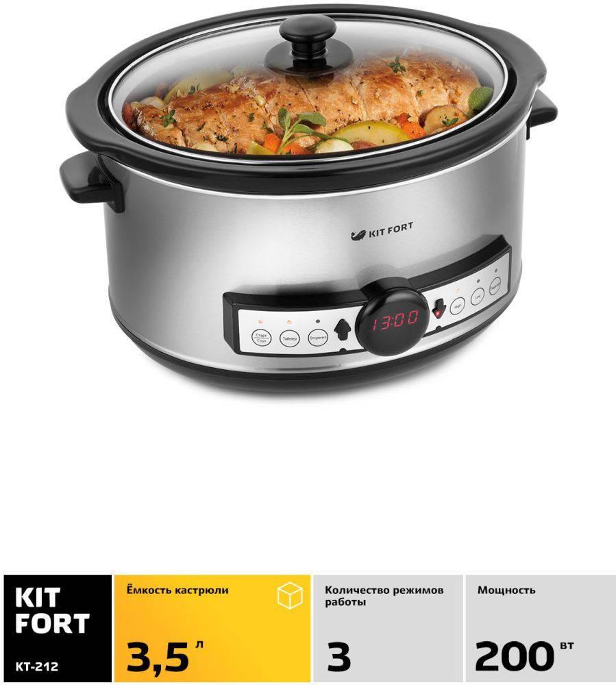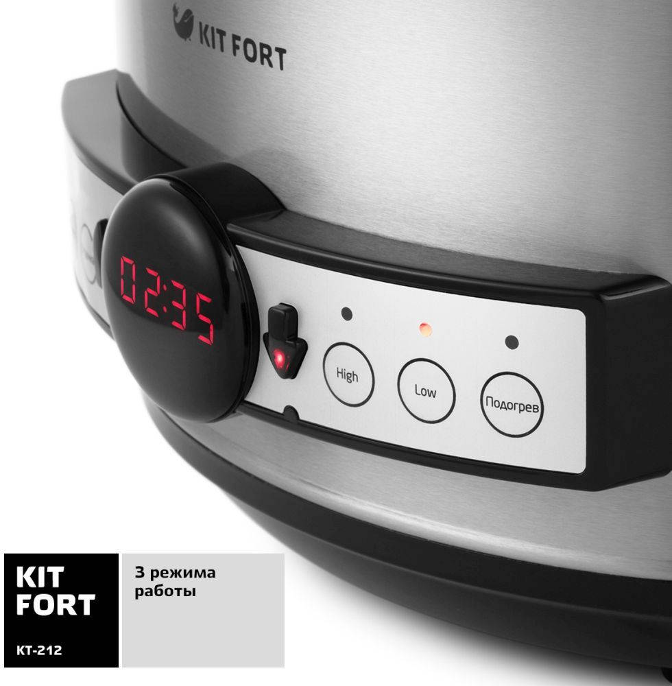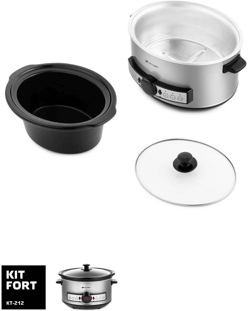 Мультиварка KITFORT Медленноварка КТ-212 3.5л 220Вт серебристый/черный