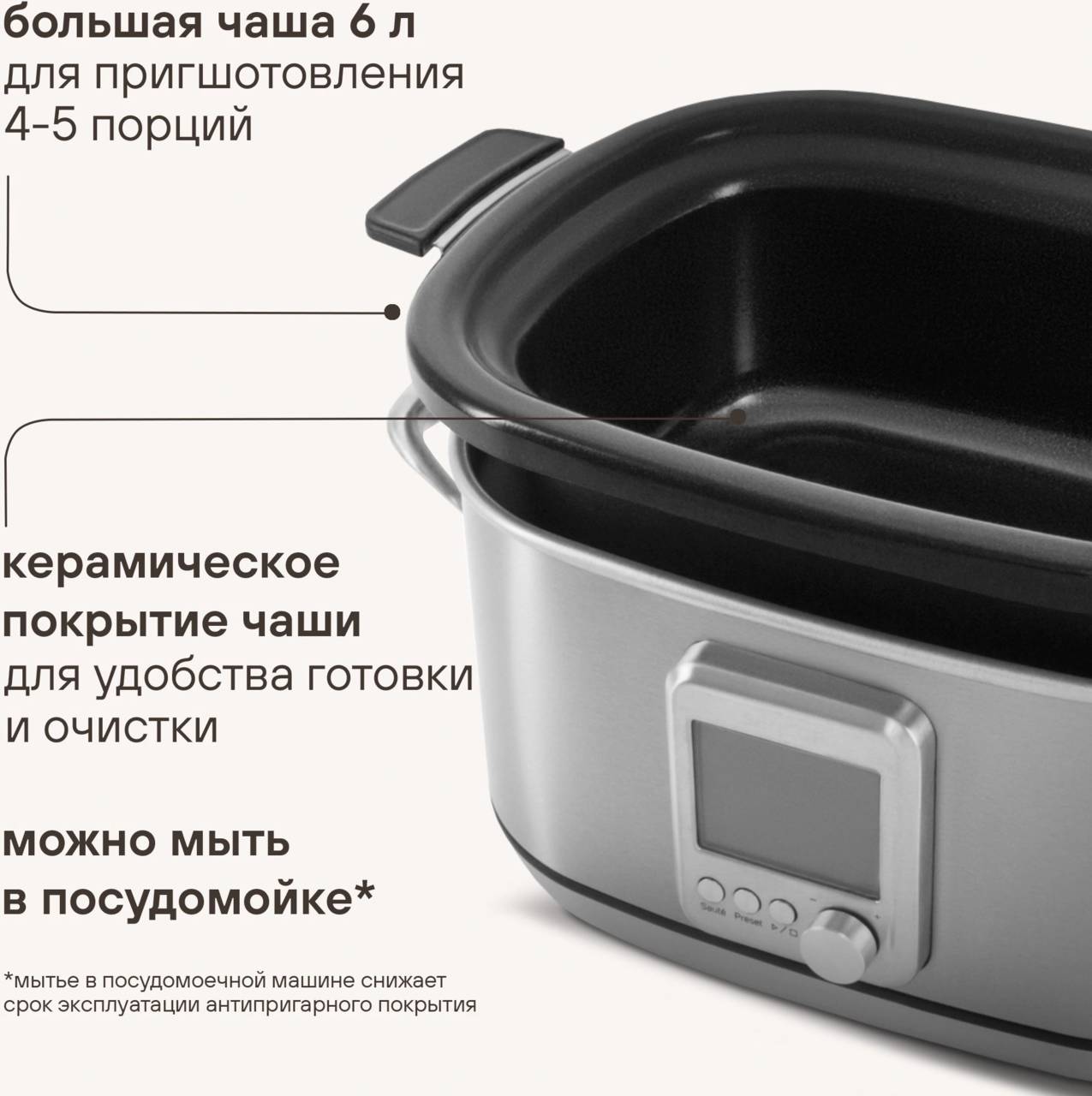 Конструктивные особенности:дисплей, прозрачная крышка, чаша с ручками