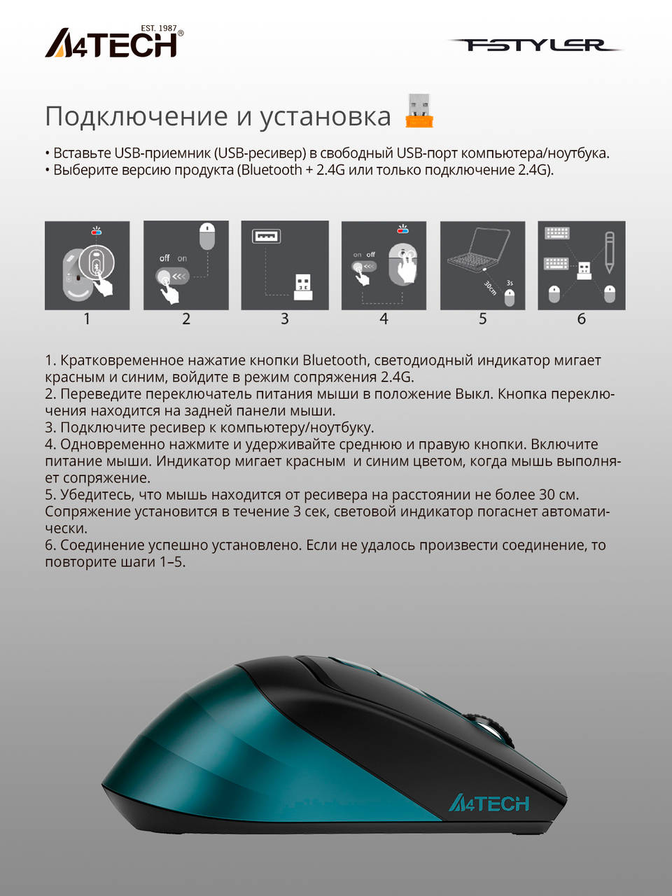 Описание:Мышь A4TECH Fstyler FB35C зеленый оптическая (FB35C MIDNIGHT GREEN)