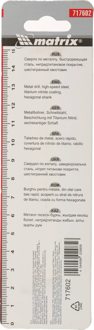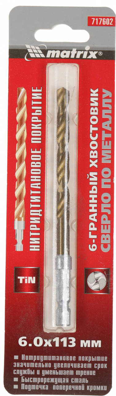 Набор бит и сверел MATRIX Сверло 717602 по металлу Д=6мм Дл=113мм для дрелей