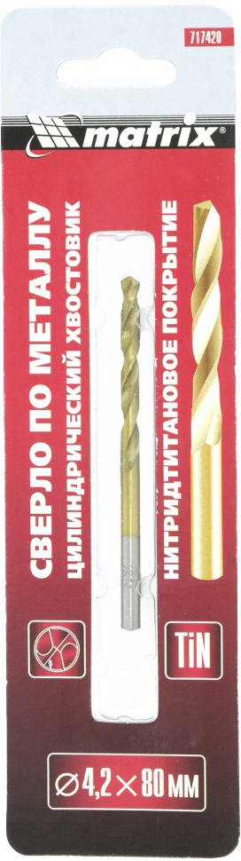 Набор бит и сверел MATRIX Сверло 717420 по металлу Д=4.2мм Дл=75мм для дрелей