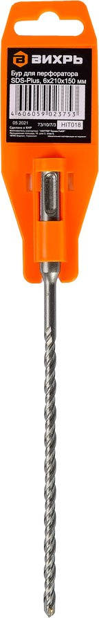 Бур SDS-Plus «ВИХРЬ» предназначен для ударно-вращательного сверления отверстий в бетоне, кирпичной кладке, природном и искусственном камне. Угол заточки наконечника – 130 градусов