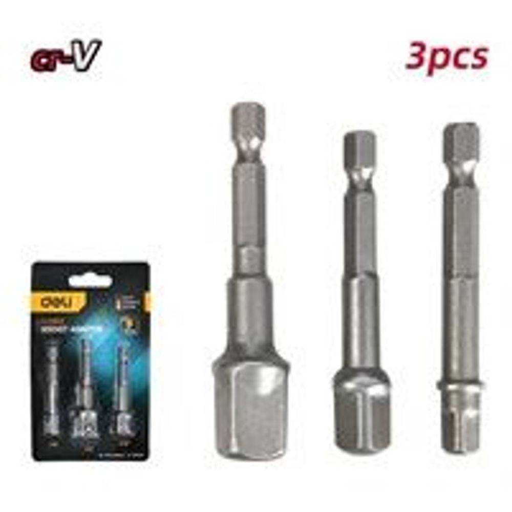 Набор оснастки DELI Набор адаптеров для торцевых головок 3 шт DL110002 размер наконечника:1/4, 3/8, 1/2 дюйма, сталь Cr-V