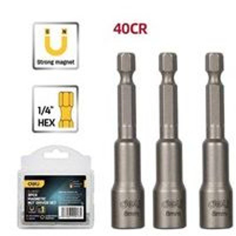 Набор оснастки DELI Набор магнитных бит с торцевой головкой 3шт DL4808T 8мм, длина 65мм, сталь 40Cr, пласт. кейс