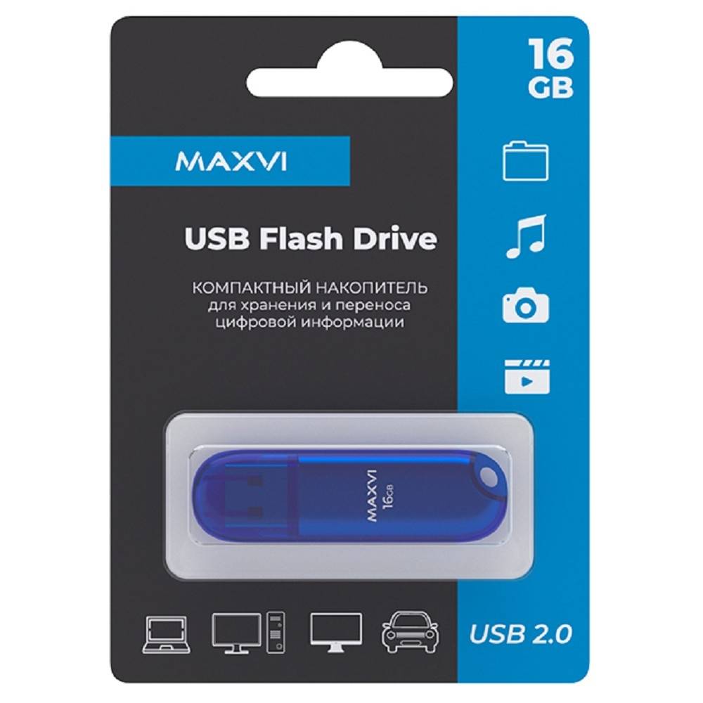 Flash-носитель Maxvi USB Drive 16GB P1 blue, монолит с колпачком, ABS пластик, USB 2.0