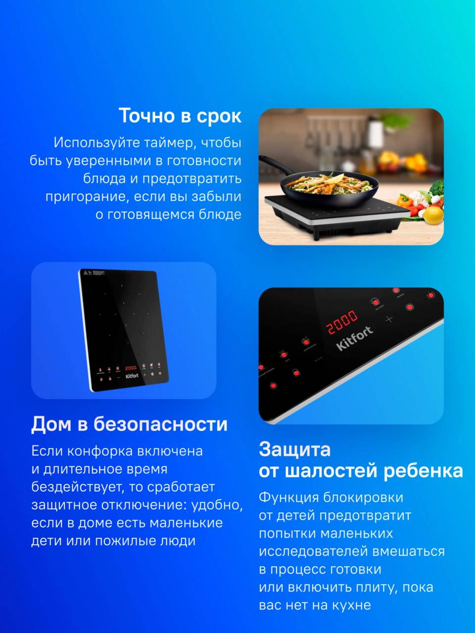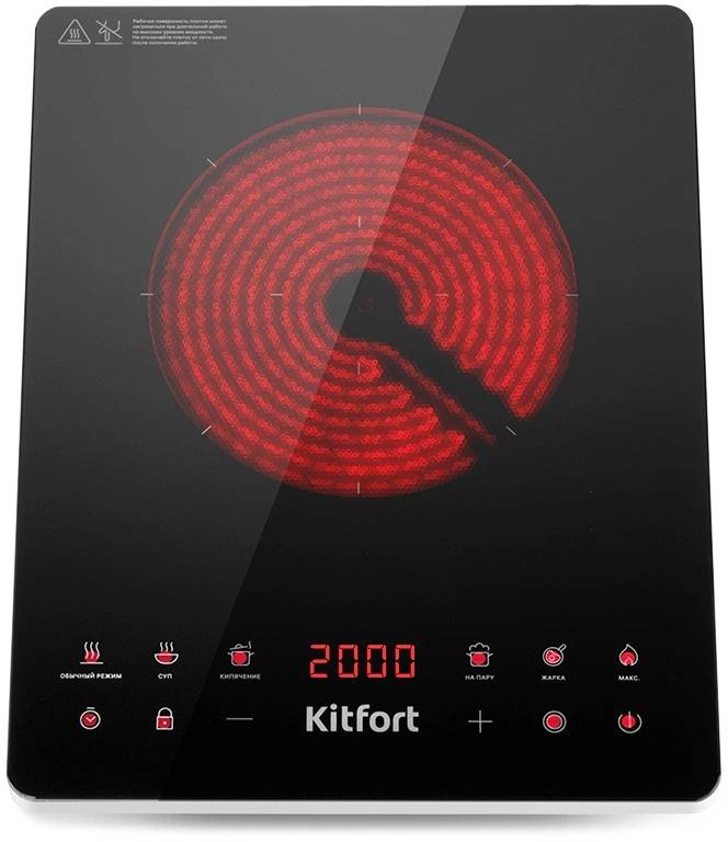 Настольная плита KITFORT Плита Инфракрасная КТ-140 черный/серебристый стеклокерамика